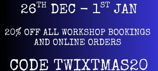 OUR TWIXTMAS SALE IS ON BETWEEN BOXING DAY AND NEW YEAR'S DAY! ENDS MIDNIGHT ON 1ST JANUARY!